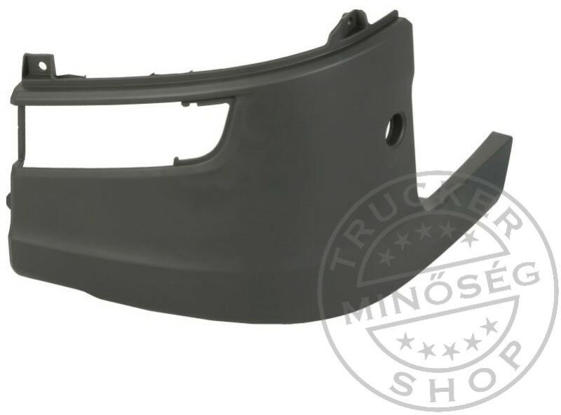 Műanyag sarokelem az első lökhárítóra. Bal oldalra. Ködfényszóró kivágással. Magassága: 450 mm Sötétszürke színben. Típus: - Scania S580 2017-től Gyári szám: 2077926