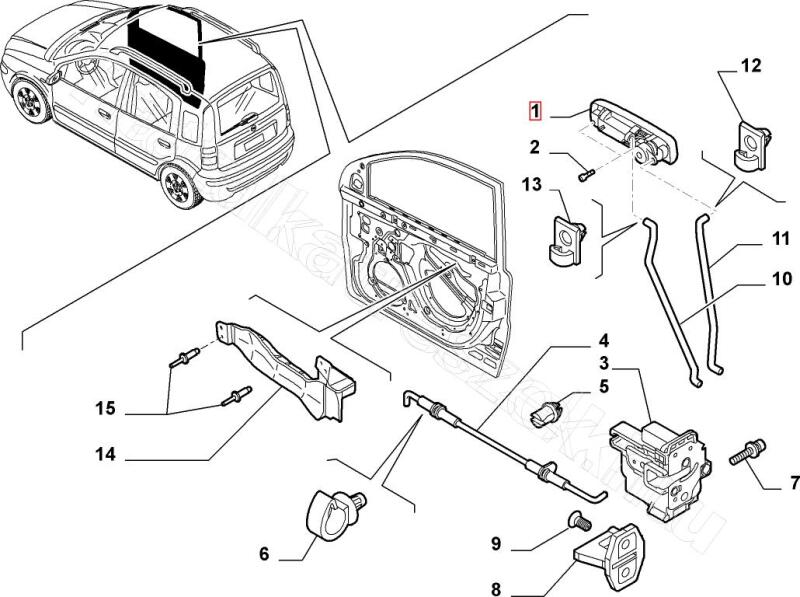 Panda Első, külső kilincs, jobb oldali. 2003-tól.