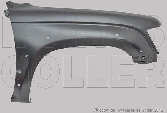 Első sárvédő jobb, díszléc és ant. lyukakkal (4WD) Minden termékünk új, utángyártott. A karosszéria elemek nem színre fényezettek, az alapozás színe is eltérő lehet a képen látható színtől! Esetleges készlethiányok előfordulhatnak.