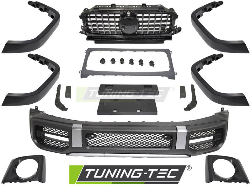 Body kit SPORT LOOKEz a készlet a W464 szabványos verziójának módosítására szolgál. A lökhárítók és a kerékívek polipropilénből készülnek. A karosszériakészlet két színben kapható: króm és fekete. Vásárláskor kérjük, válassza ki, hogy a grill és a tartozékok milyen színű változatára van szüksége. A készlet tartalma: - első lökhárító- kerékívek- gril