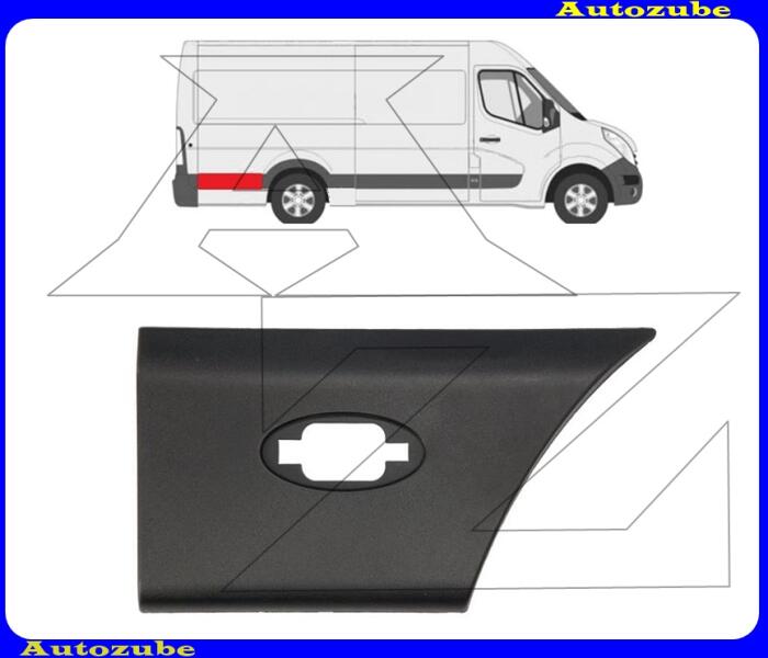 NISSAN NV400 2011.09-től Hátsó sárvédő díszléc kerékív mögött jobb, szélességjelzős "hosszú kivitel: 4332mm" Utángyártott alkatrész
