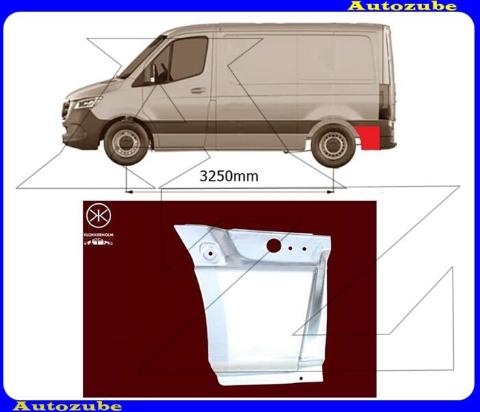 MERCEDES SPRINTER B907 2018.06. -tól Hátsó sárvédő hátsó rész bal (17cm) "kompakt kivitelhez / tengelytáv: 3250mm" KLOKKERHOLM Utángyártott alkatrész
