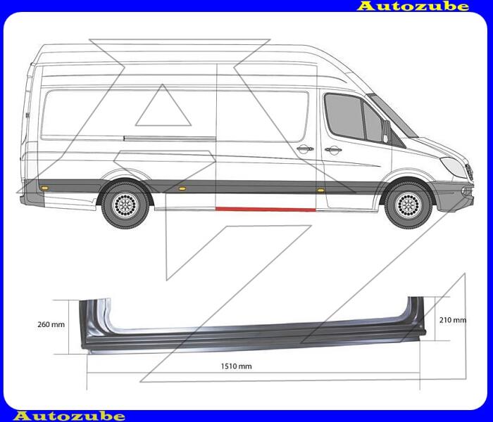 MERCEDES SPRINTER B907 2018.06. -tól Küszöb jobb "tolóajtós" oszloppal (külső javítólemez) KLOKKERHOLM Utángyártott alkatrész