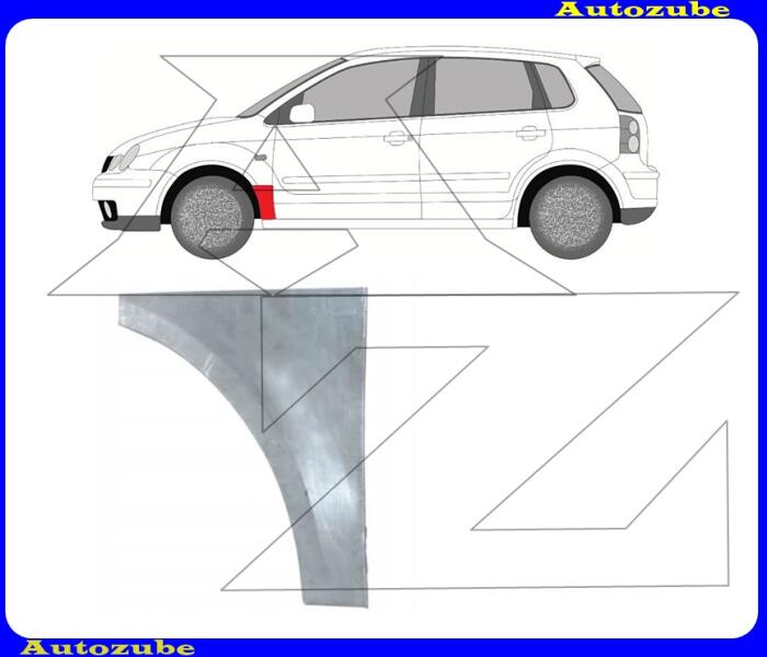 VW POLO 4 2005.04-2009.05 /9N/ Első sárvédő hátsó alsó rész bal, magasság: 38cm (javítólemez) POTRYKUSUtángyártott alkatrész