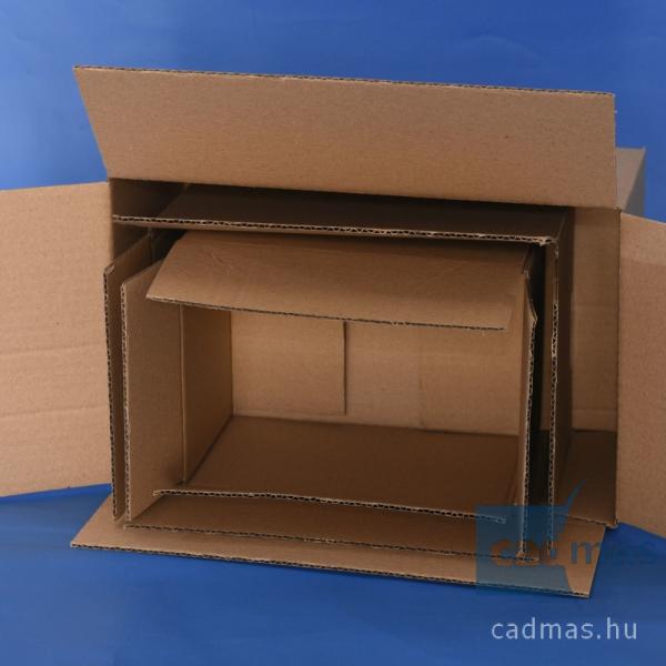 Háromrétegű tetőfenék-lapolt dobozUniverzális bárhol, bármikor felhasználható csomagolódoboz. 3 rétegű hullámpapírból készült doboz Kedvező áron elérhető Különböző méretű és alakú termékek csomagolásához használható Univerzális csomagolóanyag - Bármi, ami belefér Zárásához elsősorban ragasztószalag javasolt, de tűzéssel is zárható A méretek minden e