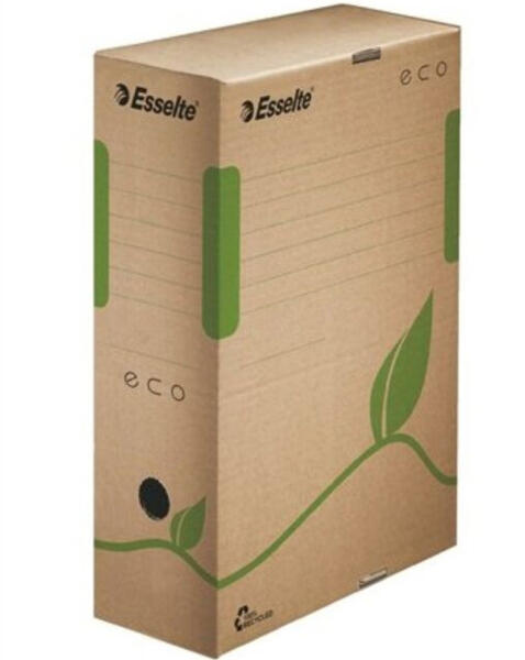 ARCHIVÁLÓDOBOZ, A4, 100 MM, ÚJRAHASZNOSÍTOTT KARTON, ESSELTE ECO, BARNA Az Eco dobozok költséghatékony és környezetbarát megoldást kínálnak a dokumentumok archiválásához - 100%-ban újrahasznosított (85%-ban kommunális hulladékból előállított) és 100%-ban újrahasznosítható karton alapanyag - FSC minősítés - ideális iratrendezőkből kiemelt dokumentumok archiválás