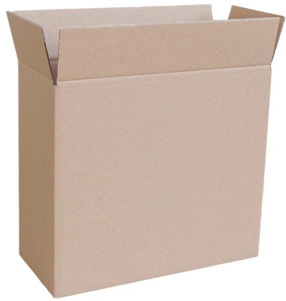 Barna hullámkarton doboz Mérete: hosszúság: 320mm, szélesség: 140mm, magasság: 280mm Könnyen hajtogatható. Kiterítve érkezik a vásárlóhoz. Alkalmas különböző méretű, alakú tárgyak tárolásához, hagyományos vagy raklapon történő szállításra. Strapabíró, stabil és 100%-ban környezetbarát. Kiszerelés: 30db/csomag Anyagminőség: 22B (3 réteg) Ez a termék méret