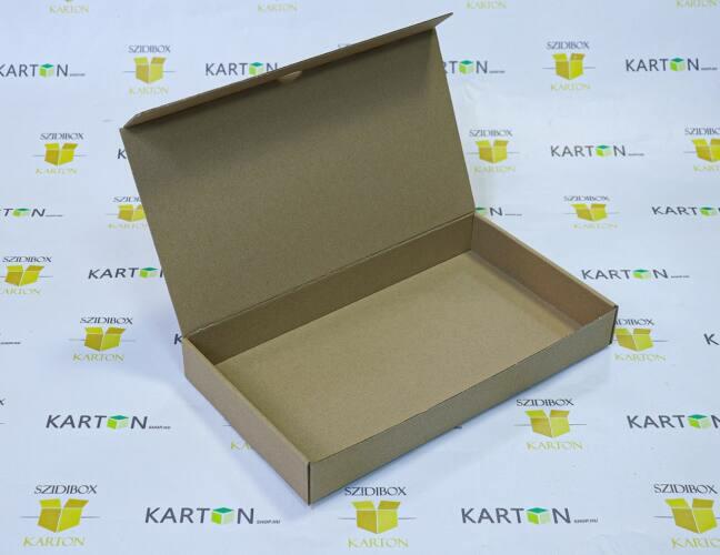 Közepes méretű, felnyitható tetejű, önzárós hullámkarton doboz. Egyszerűen összehajtható. Mivel önzáró, kiterítve érkezik a vásárlóhoz. Ajándéktárgyak, szerszámok, egyéb hétköznapi tárgyak tárolására, webáruházas termékek küldéséhez alkalmas. Értékesítési csomagolásnak is ajánljuk. Ragasztószalag használata nélkül is zárható. Alapanyag: 312E (barna