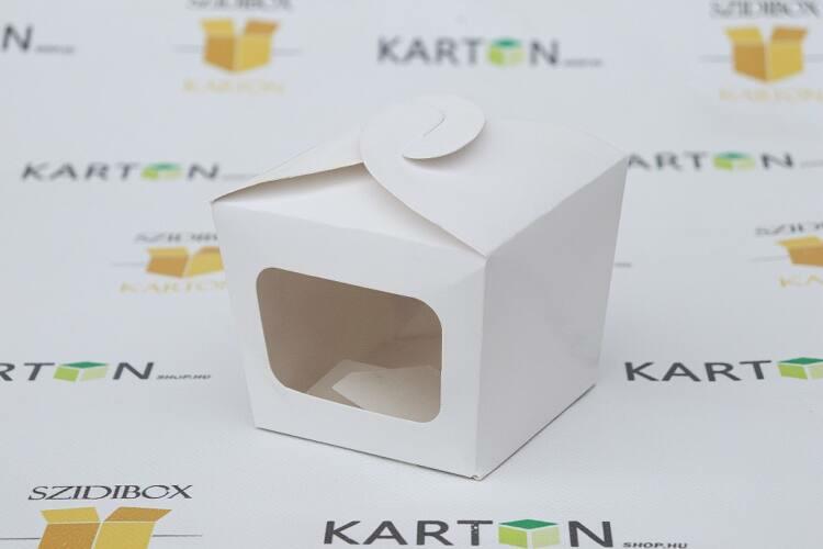 Tetején önzáródós ajándék doboz fóliával az ablakán, fehér színben. Tökéletes bármilyen apróbb ajándék, édesség becsomagolásához, értékesítéséhez. Ideális esküvőkre köszönőajándéknak. Karton alapanyag: 280g/m2 Ragasztószalag használata nélkül zárható. Kiszerelés: 50-100db/csomag Mérete: hosszúság: 95mm, szélesség: 95mm, magasság: 80mm