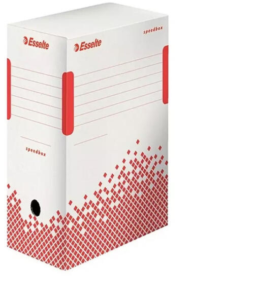 ARCHIVÁLÓDOBOZ, A4, 150 MM, ÚJRAHASZNOSÍTOTT KARTON, ESSELTE "SPEEDBOX", FEHÉR A Speedbox dobozokkal időt és energiát takaríthat meg - mindössze egy mozdulat és máris készen állnak az archiválásra - összeállítása könnyű és gyors, nincsen szükség összeállítási útmutatóra - gyors összeállítás, időhatékony archiválás - a dupla zárófül megakadályozza a doboz