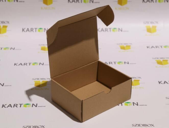 Kis méretű, felnyitható tetejű, önzárós hullámkarton doboz. Egyszerűen összehajtható. Mivel önzáró, kiterítve érkezik a vásárlóhoz. Ajándéktárgyak, szerszámok, egyéb hétköznapi tárgyak tárolására, webáruházas termékek küldéséhez alkalmas. Értékesítési csomagolásnak is ajánljuk. Ragasztószalag használata nélkül zárható. Alapanyag: 312E (barna - barna)