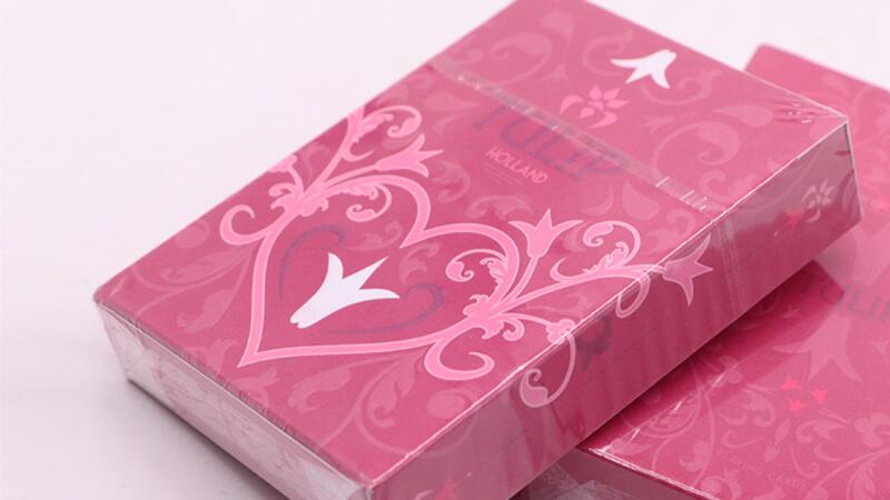 Az erdeti, angol nyelvű ismertető:The Dutch Card House Company are celebrating their 5th Anniversary! Over the past five years, they have released various brands and decks of playing cards. To celebrate this success, they released a new edition to the Tulip Delft Blue series The Pink Tulip Deck is a collector's deck in the Tulip series. The custom-designed deck features pink colors with the Tuli