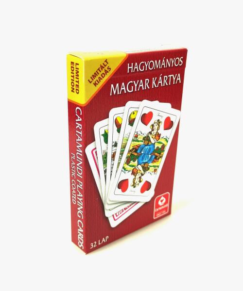 Standard, 32 lapos magyar kártyapakli a Cartamunditól. A csomag papírból készült, a lapokat masszív, standard minõségű papírra nyomtatták és egy lakkréteggel kezelték, hogy tartósabb legyen. Tökéletes otthoni kártyacsatákhoz, megismerkedni a magyarkártya-játékokkal.