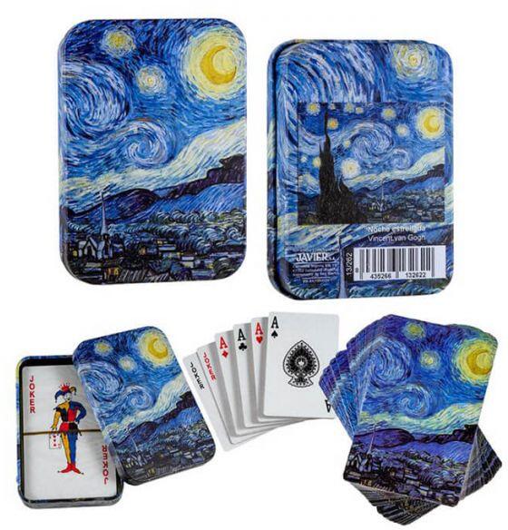 Exkluzív kivitelű römi kártya csomag, melynek hátsó lapjain Vincent van Gogh Csillagos éj c. műve jelenik meg. A csomag 1 pakli (55 lap) kártyát tartalmaz. Anyaga: kemény karton. Csillagos éj mintás fémdobozban érkezik, melyben praktikusan tárolható.