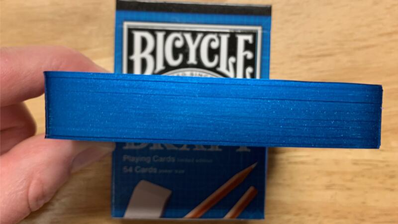 Az eredeti, angol nyelvű ismertető:The tuck box for the Draft Bicycle Deck emulates a blueprint drawing pad. The black bounding at the top wraps over to the front and back, and the sides graphically feature the individual edges of each sheet. The pencils, eraser and copy treatment on the front complete the drawing pad look in the overall design. The sketch style drawings utilized in the Sketch D