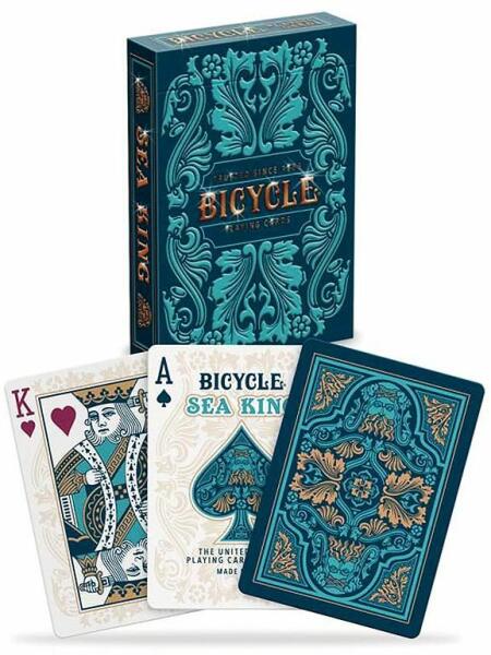Bemutató videó a csomagról: Bicycle Sea King A vibráló, gazdag kék és türkiz színek a tenger mélységét és felszínének csillogását juttatja eszünkbe minden leosztásnál. A kártyadoboz dombornyomott és fóliázott, már maga a csomag kibontása is egy élmény! A szokásos Bicycle minõséget képviseli a csomag, a megszokott Air-Cushion Finish-sel. Póker méret.
