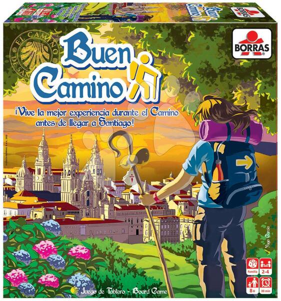 Buen Camino társasjáték a spanyol Educa gyártó műhelyéből gyerekeknek 8 éves kortól. A társasjáték során a gyerekek kalandokkal szembesülnek, és különböző forrásokat gyűjtenek annak érdekében, hogy leküzdjék a Camino de Santiago 5 utolsó szakaszát. A pompás társasjáték 2-4 játékos számára alkalmas. Tartalmát 126 kártya, 28 jelzőtábla, 4 játék figura és eg
