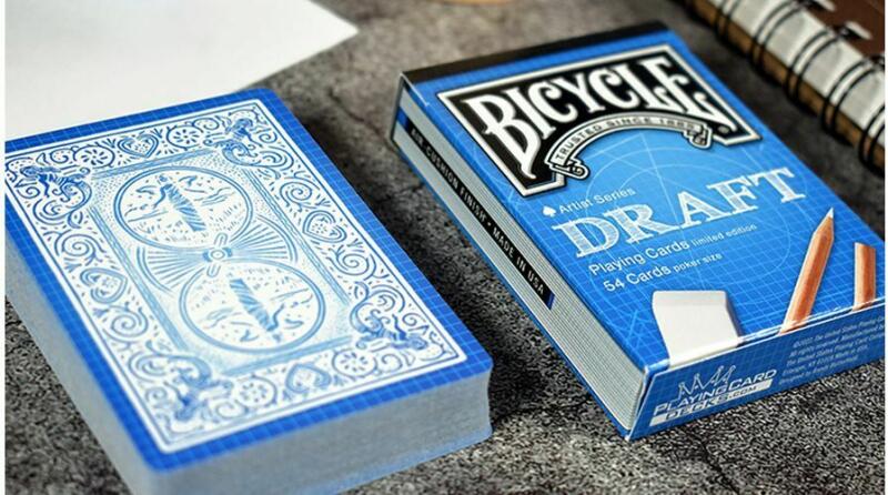 Az eredeti, angol nyelvű ismertető:The tuck box for the Draft Bicycle Deck emulates a blueprint drawing pad. The black bounding at the top wraps over to the front and back, and the sides graphically feature the individual edges of each sheet. The pencils, eraser and copy treatment on the front complete the drawing pad look in the overall design. The sketch style drawings utilized in the Sketch D