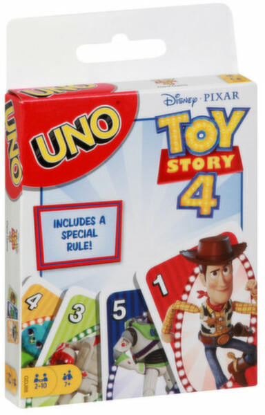 - Játékidő: kb. 15–20 perc - Játékosok száma: 2–10 fő - Ajánlott: 7 éves kortól - Játékszabály: Az lesz a nyertes, aki minden lapjától megszabadul! Színre színt, számra számot kell letenni. A kártyák mind a Toy Story karaktereihez vannak igazítva. Szabadulj meg te legelőször a lapjaiddal és megnyered a játékot! Ha már csak egy lap maradt a kezedben, ne felejtsd el b