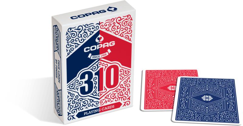 Az új Copag 310 Slimlinehoz készült különleges csomag, a megszokott True Linen B9 Finish-sel. A csomag a következõ hátlapkombinációkat tartalmazza egyenlõ arányban: Piros / piros Kék / kék Prios / kék Póker méret.