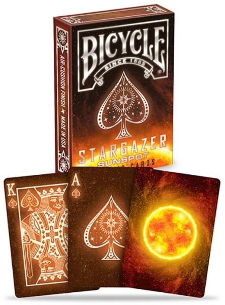 Bemutató videó a csomagról: Stargazer Sunspot A Bicycle Stargazer Sunspot kártyákhoz elképesztõ, vibráló színeket használtak, a Nap gyönyörű, izzó színeit. A hátoldal igazi csemege a szemnek, gyönyörű legyezõt lehet nyitni a csomaggal. A doboz is méltó otthona a kártyáknak, már a zsebbõl kivéve felhívja magára a figyelmet. A kártyák természetesen a Bicycle prémium