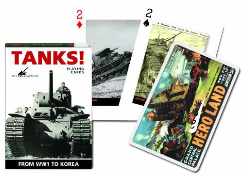 Exkluzív römi kártya - Tankos 1x55 lap - Piatnik Hivatalos magyarországi forgalmazótól. Leírás: Az I. világháborútól a Koreai háborúig rengeteg tank harci járművet láthatsz ezeken a kártyalapokon, melyek így még látványosabbá teszik a játékot. A különleges römi kártyalapokon a tankos kiegészítő képek láthatók, melyek így nem csak hagyományos kártyalapok, de ex