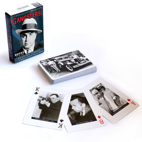 Gengszterek exkluzív 1x55 lapos römikártya Hivatalos magyarországi forgalmazótól. Leírás: Igazi zsugával akarsz játszani? Ebben a pakliban benne van minden idők legnagyobb gengszterei. Maffia vezérek, szeszcsempészek, bérgyilkosok, betörők, és pandúrok. Al Capone, Clyde Barrow, és a nagy maffiacsaládok fotóival illusztrált kártyalapok. A römi (Rummy) kártyajátékok egy cs
