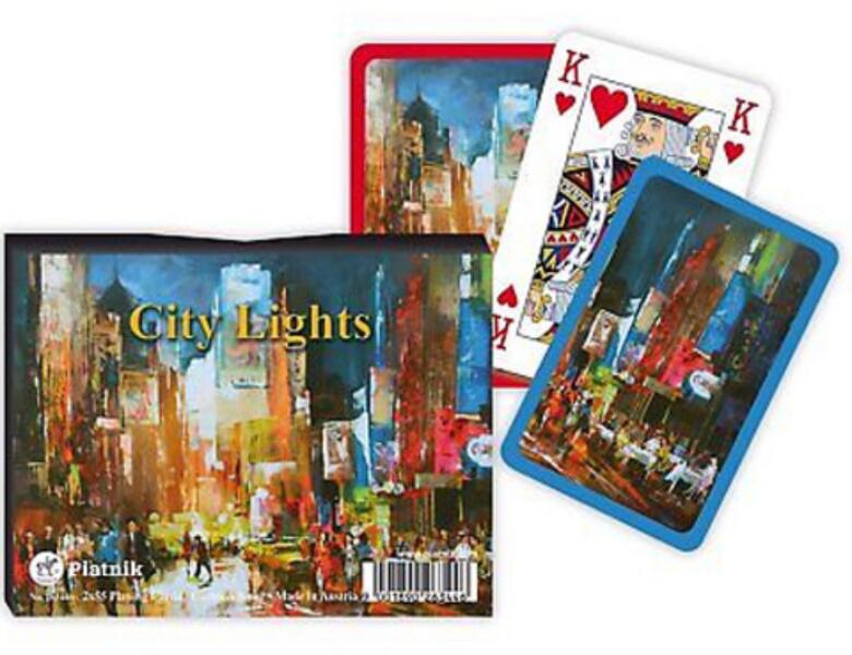 Luxus römi kártya - City Light 2x55 lap - Piatnik Hivatalos magyarországi forgalmazótól. Leírás: A sohasem alvó nagyvárosok lámpa és színes neonfényei különleges képet festenek, és remek díszítésként szolgálnak ennek a römikártyának a hátlapján. A piros és a kék keret pedig megkönnyíti a lapok szétválogatását, ha csak egy 55 lapos paklira van szükségünk. A Pia
