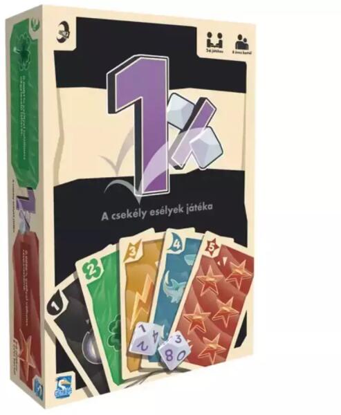 Mit kell tudni a játékról? 1% - A csekély esélyek játéka Gyorsan lejátszható, licitálós és blöffölős társasjáték 8 éves kortól, melyben a cél megdobni a győztes kockakombinációt, miközben a fordulókban jutalomkártyákat is lehet szerezni, növelve a győzelmi esélyeket. A játék lényege, hogy 2 darab 10 oldalas dobókockával kell két nullát dobni, melynek az esély