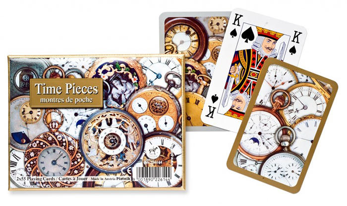 2 csomag luxus minőségű Piatnik bridzs/römi kártya egyedi díszítésű hátlappal. Arany színű kemény karton dobozban, 2 x 55 lap, normál index 4 sarokban. Anyaga: papír Lapméret: 58 x 89 mm Az 1824-ben alapított, minőségi termékeiről híres Piatnik gyár kártyái a már megszokott, magas színvonalat képviselik, hasonlóan puzzle kirakóihoz és társasjátékaihoz. Jó szórak