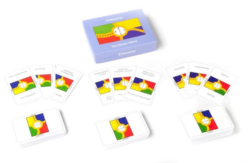 Az Értékkártya azért jött létre, hogy elgondolkodtató és irányt adó segítséget nyújtson az értékek és normák megbeszéléséhez. A kártya 2 nyelvű: magyar, angol A játék lényege az alábbi kérdés egyéni megválaszolása: Mit gondolok én egyénileg (vagy mi mint csapat/szervezet) arról, hogy mi lenne a helyes cselekedet? És aztán a következő: Milyen hatással lesznek