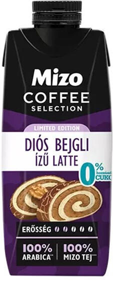 Kávés tej MIZO Coffe Selection Latte Diós bejgli 0% hozzáadott cukor UHT 0,25L