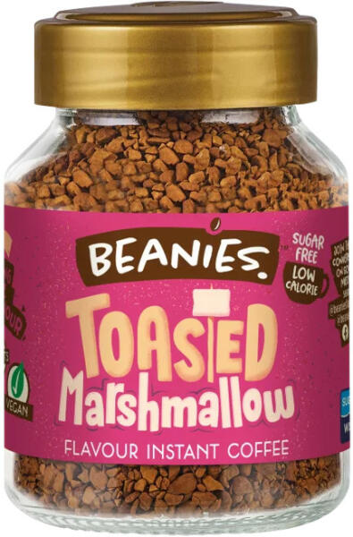 Beanies Toasted Marshmallow ízesített instant kávé Angliából: a prémium minõségű kávét fagyasztva szárítják és különlegesen finom ízeket adnak hozzá, hogy a kávézás minden alkalommal igazi ünnep legyen. A Beanies instant kávéi cukormentesen készülnek és egy csésze csupán 2 kalóriát tartalmaz! Alacsony kalória Hozzáadott cukormentes Mogyorót nem használó üzemb