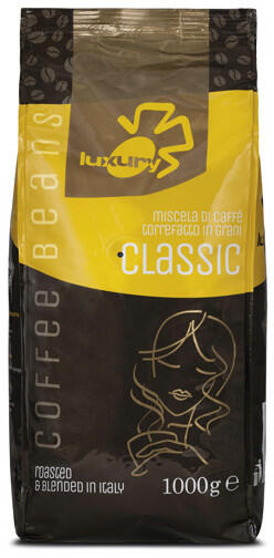 A Luxury Classic Caffé egy prémium minőségű szemes kávékeverék , amely a legfinomabb Arabica és Robusta kávészemek tökéletes harmóniáját kínálja. Ez az 1 kg-os kiszerelésű kávékeverék a világ legjobb kávétermesztő régióiból származó gondosan válogatott kávészemekből készül. A közepes pörkölésű keverék kiemeli a kávé természetes aromáit és gazdag, te