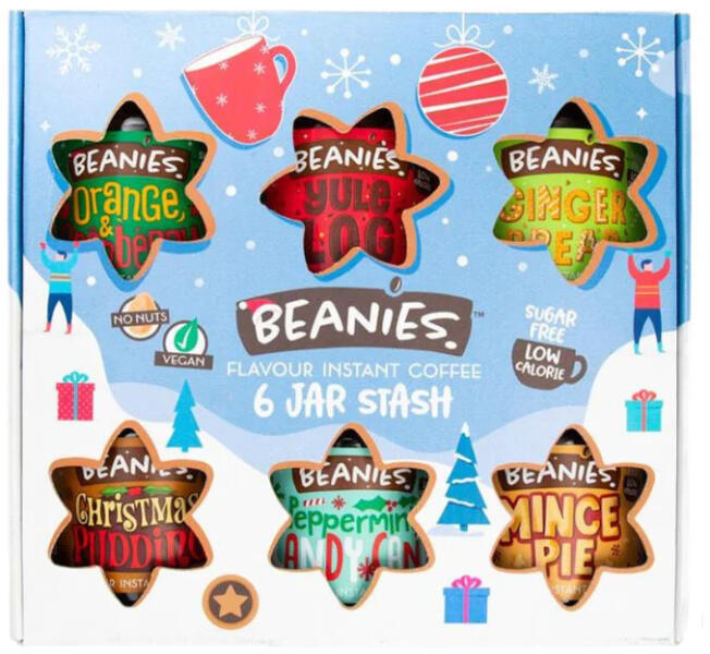 Ajándékozz különleges ízélményeket a Beanies karácsonyi díszdobozos válogatással! A készlet hatféle ízesített instant kávét tartalmaz, melyek tökéletesek az ünnepi hangulat megteremtéséhez, és bármely kávérajongó szívét megdobogtatják. Varázsolj ünnepi hangulatot minden kávészünetbe a Beanies karácsonyi díszdobozos válogatásával! Ez a stílusos ajándékcsom