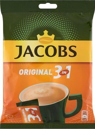Jacobs Original 3in1 instant kávé 10 x 15,2g Édesített instant kávé keverék. Hozzávalók: Cukor (62%), instant kávé (15%), teljesen megszilárdult kókuszzsír. Glükózszirup, Tejfehérje , Laktóz ( tejből ). Stabilizátorok (E 340, E 452). Emulgeálószer (E 471), csomósodást gátló anyag (E 341). Az allergének félkövérrel vannak jelölve. Táplálkozási értékek 100 g 15,2