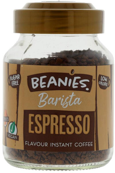 Beanies Barista instant espresszó. Cukormentes, vegán és alacsony kalóriatartalmú. Prémium minőségű, fagyasztva szárított kávéból készül.