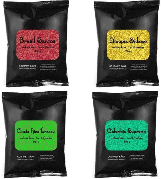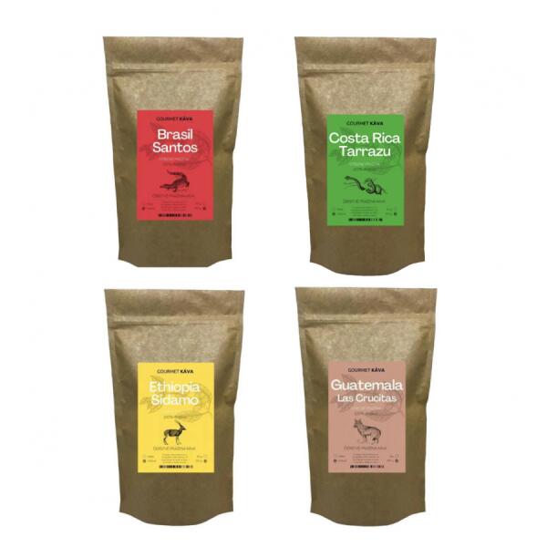 Nem tudja melyik 100%-os arabica kávét válassza? Vásárolja meg ezt a 4 különböző, egyenként 250 g-os kiszerelésből álló keveréket , és 10% kedvezményt kap az árból! Összesen 1 kg pörkölt kávé .
