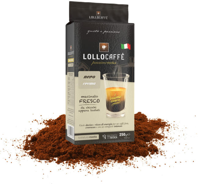 250 g Lollo őrölt kávé Nero Crema keverék Tapasztald meg a Lollo Nero Crema keverék intenzív, testes ízvilágát, amely a robusta és arabica kávébabok kiváló kombinációja. Ez a sötét pörkölésű kávé gazdag crema-val és csokoládés, enyhén diós jegyekkel varázsolja el az eszpresszó szerelmeseit. Az alacsony savasság és a hosszan tartó aroma minden csésze kávét igaz