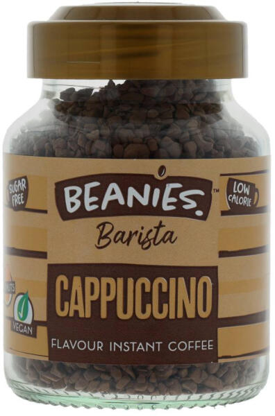 Beanies Barista instant cappuccino. Vegán, cukormentes és alacsony kalóriatartalmú. Prémium minőségű, fagyasztva szárított kávéból készül.