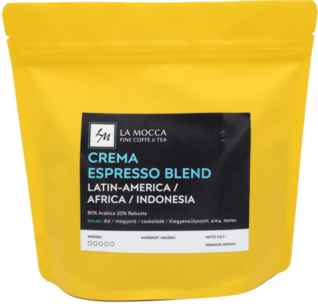 La Mocca Crema Espresso szemes kávé Valódi olasz eszpresszó, gazdag krémmel és aromával. 80% arabica , 20% robusta Ízvilág: Klasszikus, mogyoró , barna cukor Kiegyensúlyozott , sima, testes, krémes Ország: Latin-Amerika , Indonézia , Afrika Márka : La Mocca szemes kávé Cremája egységes aranybarna. Aki szereti az erős, mégis ízletes kávét, annak ez tökéletes választás. A