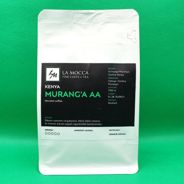 KENYA Kirinyaga Specialty szemes kávé 250 g MURANGA - GETUYA AA Márka:La Mocca szemes kávé Kézi szüretelésű kávé kis farmgazdálkodóktól. Friss heti kézműves pörkölés után légmentesen csomagolva. Ízvilág : Egy igazi Kenya , élénk édes lédús, intenzív tiszta aromákkal, narancsos és sötét étcsokis jegyek egyedülálló kombinációja Pörkölési szint : közepes Far