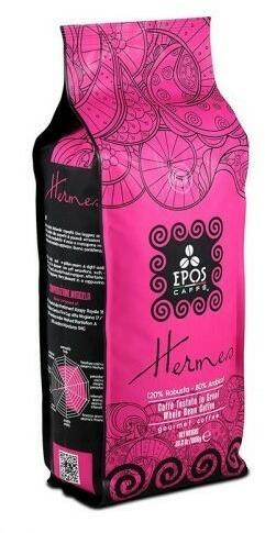 Epos Caffé Hermes kézműves szemes kávé 1kg aranyszínű krémmel rendelkező karakteres és testes 80% arabica / 20% robusta keverék, amelynek enyhe savai lehetővé teszik, hogy felfedezze a finom mandula, csokoládé és marcipán jegyeket. Utóízében a vanília és a málna íze dominál. Cappuccinóként fogyasztva különösen kellemes. Összetétel: pörkölt szemes kávé Származá