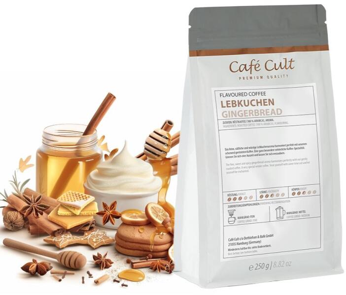 Ca fé Cult Mézeskalácsos Ízesített Pörkölt Szemes Kávé – Ünnepi Hangulat Egy Csészében Élvezze a Café Cult Mézeskalácsos ízesítésű kávé különlegességét, amely az ünnepi hangulatot és a kiváló minőséget egyesíti egy csészében. Az első osztályú Arabica kávé lágy, természetes aromái tökéletesen harmonizálnak a mézeskalács meleg fűszereivel, így mind