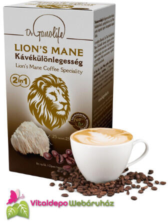 A Dr Ganolife Lion's mane 2in1 prémium minőségű bio fagyasztva szárított Arabica kávébaból és a Lion's mane gombából (süngomba) készült kávékülönlegesség. Az elme és a test harmóniája minden csészében! Tartósítószermentes, laktózmentes, adalékanyagmentes, gluténmentes termék! A Dr Ganolife Lion's mane 2in1 Kávékülönlegességben felhasznált "Fair Trade" minősí