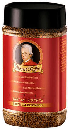 Instant kávé, 100 g Premium Intensive, exkluzív minőségű instant kávé, 100 g. Erős pörkölésű, fűszeres ízvilágú kávé. Ez a változat Mozart egyik operájának, a "Varázsfuvola" nevét viseli.