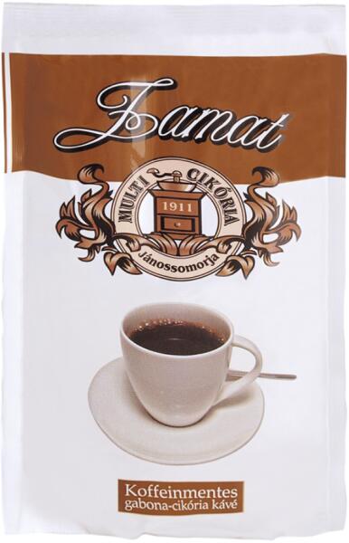 Zamat koffeinmentes gabona-cikória kávé 200g Hivatalos magyarországi forgalmazótól. Összetevők: pörkölt cikóriaaszalvány 40 %, pörkölt rozs 39,7 %, pörkölt árpa 20 %, vanília aroma, napraforgó olaj. Tápértékre vonatkozó adatok: Átlagos tápérték 100g termékben: energia 352 kcal / 1487 kJ szénhidrát 66g, melyből cukor