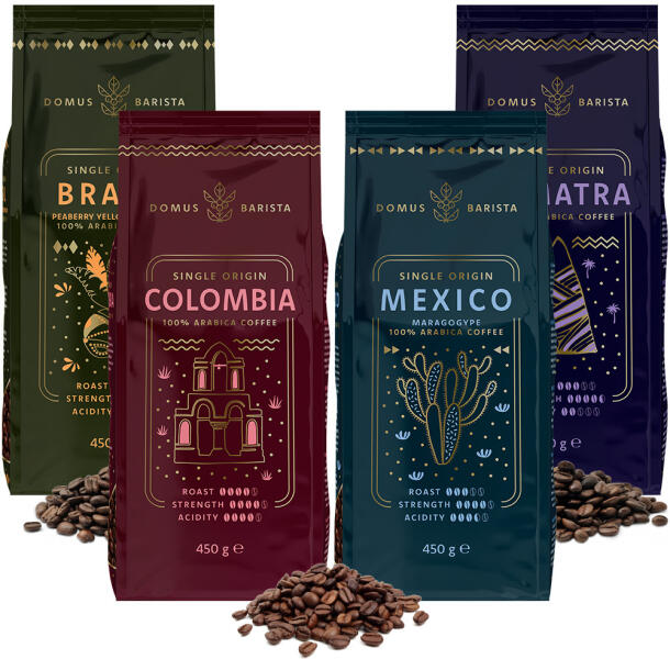 A Domus Barista luxuskávébabjai annyira finomak, hogy nehéz eldönteni, melyiket próbálja ki először. Éppen ezért összeállítottunk Önnek egy Kezdőcsomagot, amely tartalmazza a Domus Barista összes kávéját. Így felfedezheti mindegyiket. Főzze kedvenc módszerével, és utazzon a világ körül minden egyes kávéscsészével.