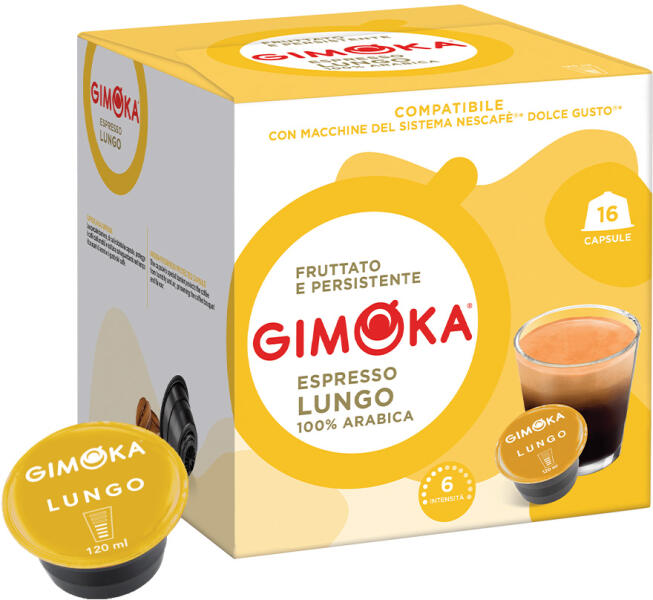 Próbáld ki a Gimoka ry Caffé Lungo-t egy kellemes csésze klasszikus olasz kávéért. A lungo ugyanúgy készül, mint egy eszpresszó, azonban ellentétben a hagyományos eszpresszóval, egy lungo nagyobb mennyiségű vízzel és hosszabb ideig készül, így enyhébb és nagyobb méretű kávét eredményez. A Gimoka lungo válogatott középen pörkölt arabica kávészemekből készül Kö