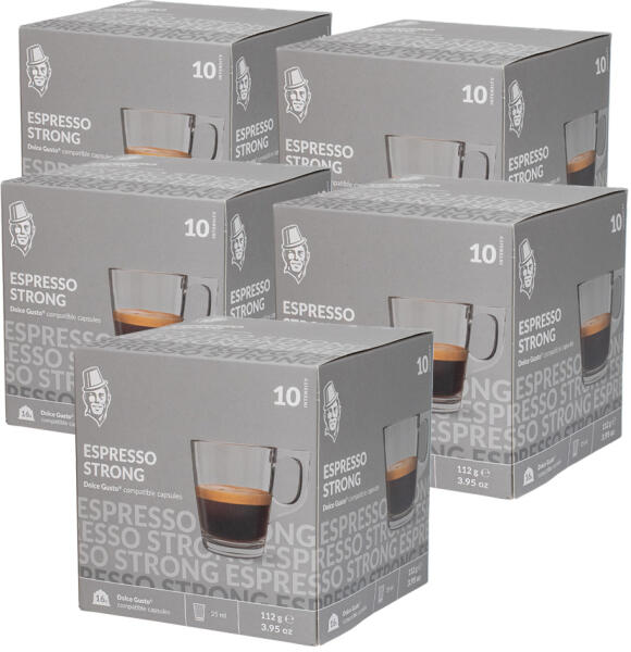 Ön rajongója a Dolce Gusto-nak, és előnyben részesíti az extra erős Espressot? Akkor ajánljuk a saját erős Espresso változatunkat. Ez egy erős, de kiegyensúlyozott Espresso, gazdag ízzel, amit savanykás jegyek követnek. Valószínűtlen, hogy talál olyat, ami jobban hatna, mint ez az Espresso. A szilárdsági skálánk tetejét jelenti 10-ből 10-gyel! A kávé nagyon erős, mert